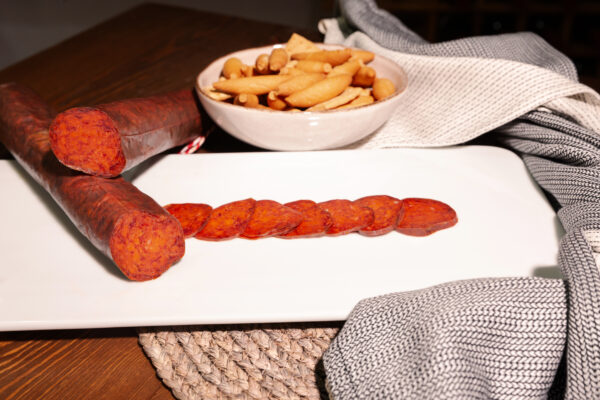 Otro de nuestros productos que se elabora siguiendo los mismos estándares que para el salchichón. El chorizo es un acompañamiento perfecto para platos tradicionales o para degustarlo en finas lonchas.