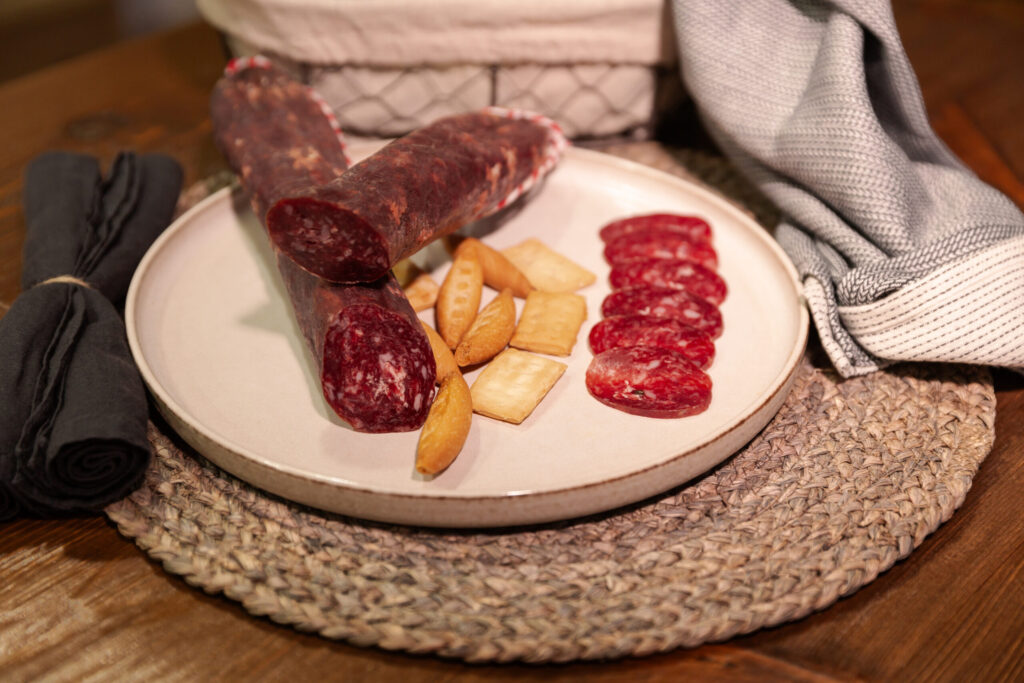 Nuestro salchichón se cura lentamente en nuestro secadero, obteniendo así su sabor equilibrado. Es un embutido ideal para degustar en finas lonchas o como ingrediente en tapas y bocadillos gourmet.